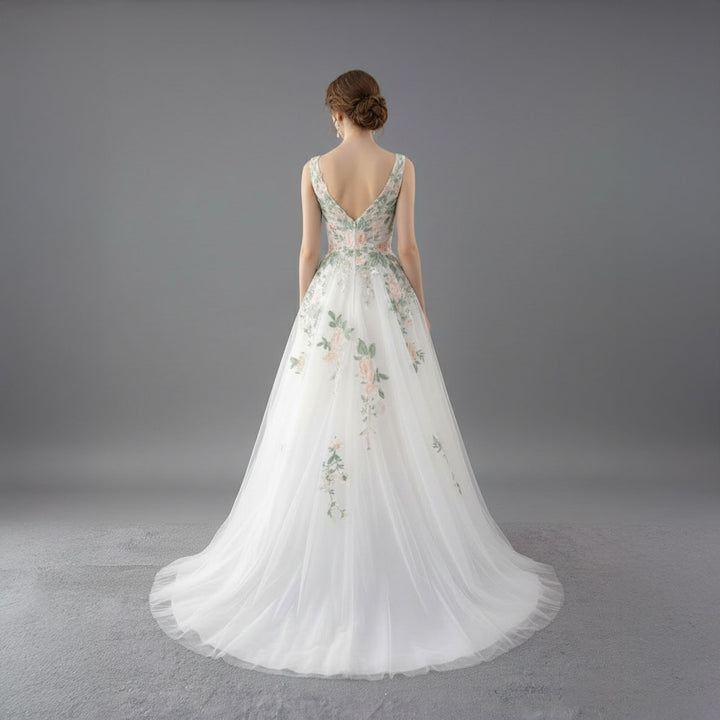 Floral Lace Wedding Dress with V Neck | ET3077