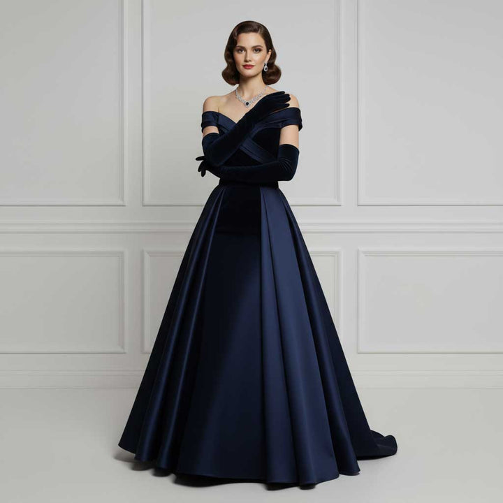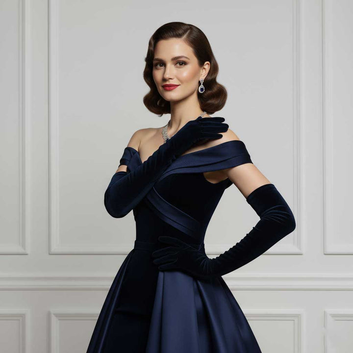 Navy Long Velvet Gloves for Opera, Formal, Black Tie Events