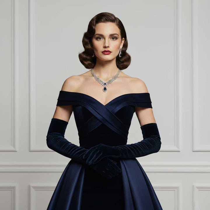 Elevate your formal attire with these sophisticated long black velvet gloves, an essential accessory for opera performances, black-tie galas, and upscale evening occasions. The luxurious velvet fabric drapes elegantly while providing a refined finish that complements tuxedos and evening gowns.